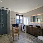 Questa villa ha 4 camere da letto e 2 bagni. Lo stabilimento si apre alla vista sul giardino. La villa Evasion Montagne A Gerardmer Avec Terrasse Et Parking - Fr-1-589-793 dispone di un bagno con una vasca da bagno e una doccia.